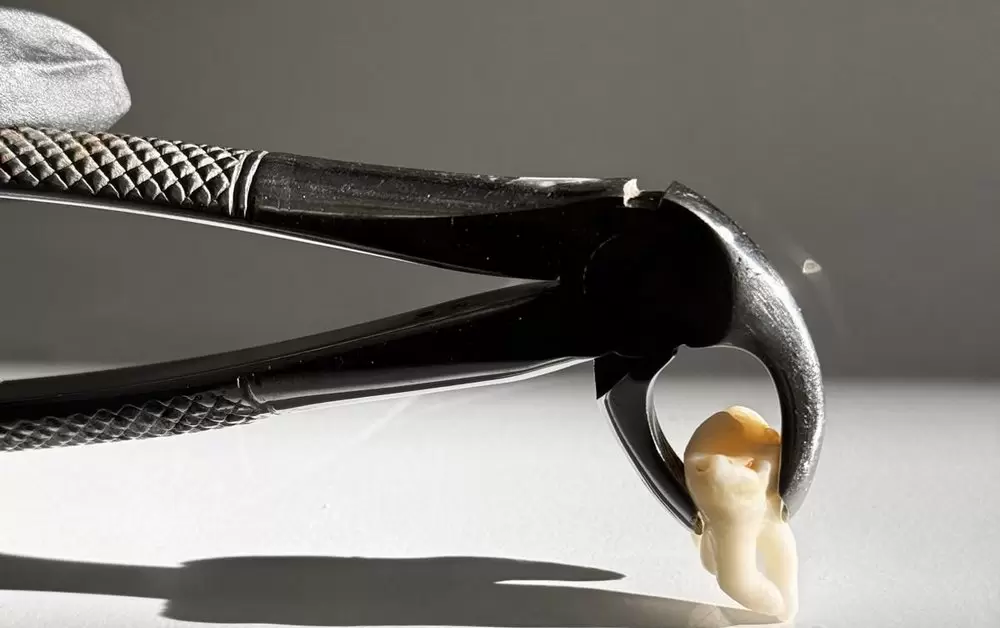 - Извлечение зуба. Если зуб прорезался полностью, его удаление производится с помощью щипцов. В более сложных случаях, когда доступ к корню затруднен или зуб ретинированный/дистопированный, хирург разрезает десну и разделяет зуб на части, что позволяет извлечь его с минимальным травмированием окружающих тканей.