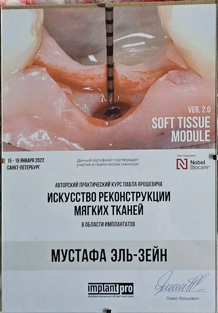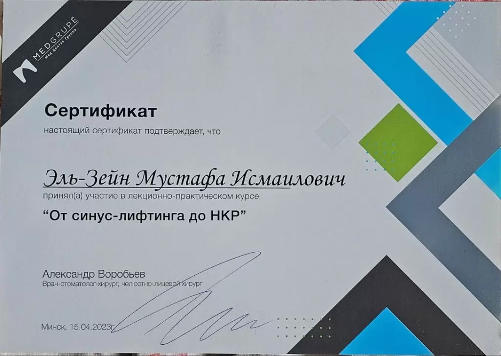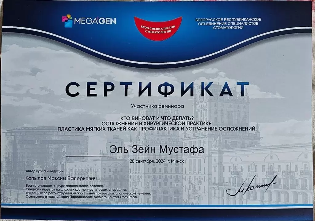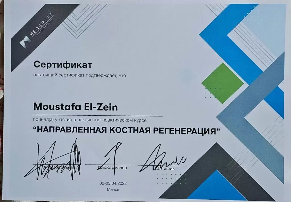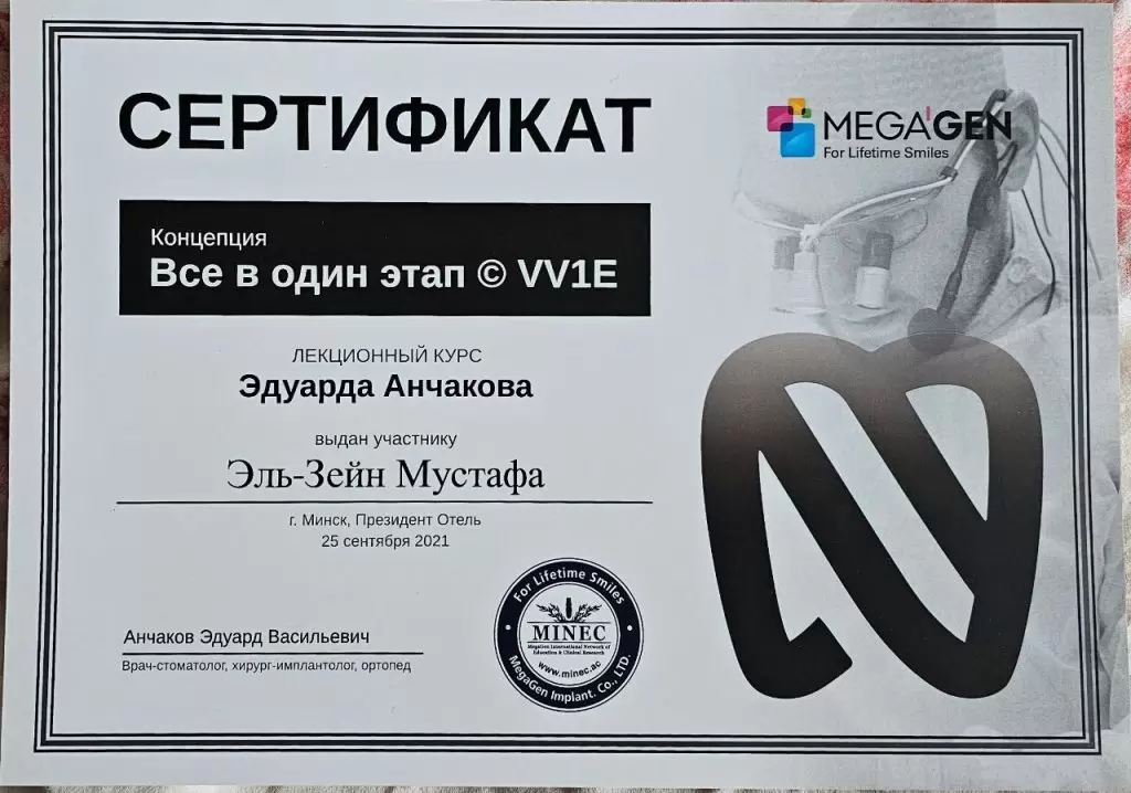 - 28.03.2022 – 08.04.2022 – БелМАПО «Реабилитация пациентов с использованием дентальной имплантации»