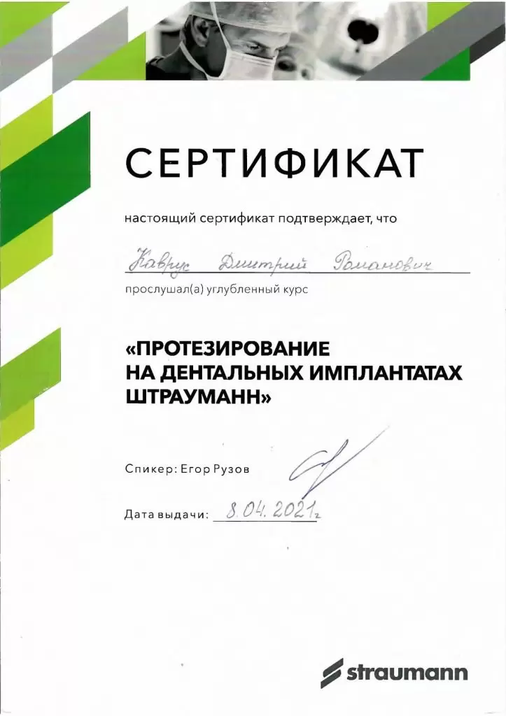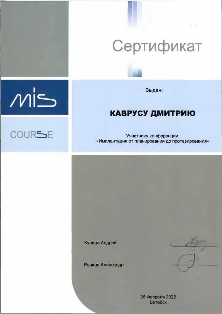 - 29.03.2021-09.04.2021 БелМАПО «Реабилитация пациентов с использованием дентальной имплантации»